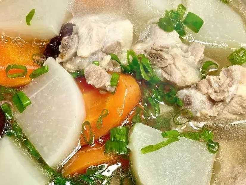 準備食材:白蘿卜,胡蘿卜,排骨,紅棗,姜片,蔥結。