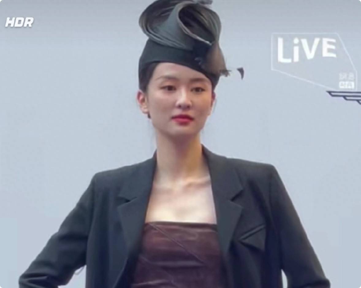 現場生圖里,禮服本身的設計全都被遮蓋了起來,長款西裝的設計也導致楊紫的腰臀比完全沒被展示出來。