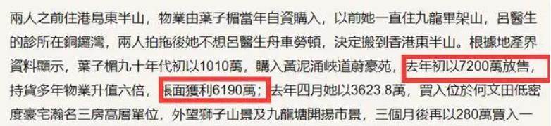 很多人以為葉子楣早早息影,生活應該不算太富足,但其實她早年曾花千萬投資房產,這些年已經漲了近6倍,前兩年以7000多萬的價格賣出。