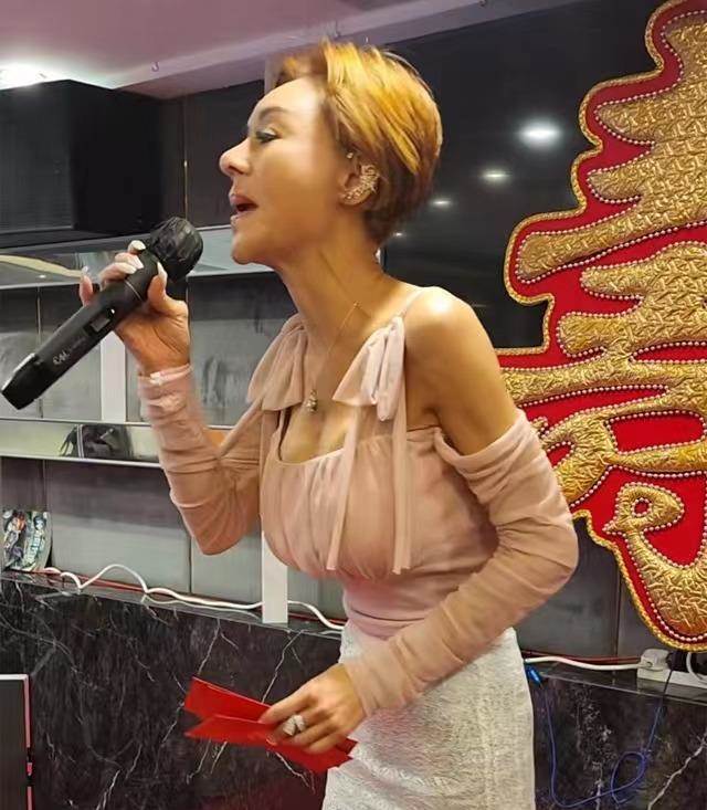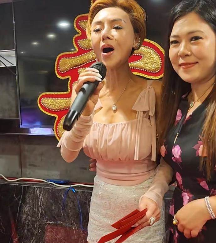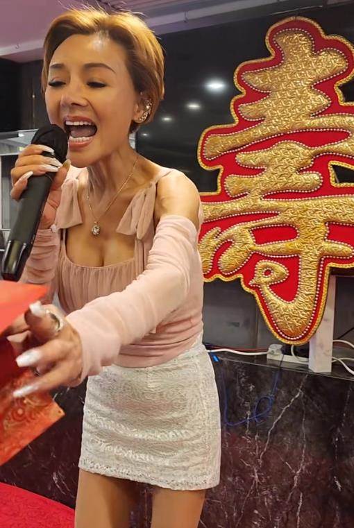 據網友爆料稱,57歲的葉子楣現身蘭桂坊參加商演,當天活動是為某老人賀壽,邀請到葉子楣現場唱歌,照片背景中也出現了大大的「壽」字。