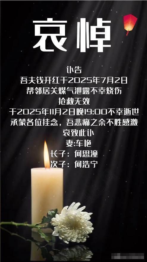 2025年11月2號傍晚7點,在與傷痛抗爭了四個月後,錢開紅的心臟停止了跳動,這個為家庭操勞半生、對他人熱心相助的漢子,終究沒能熬過這場劫難,家人也落了個人財兩空。