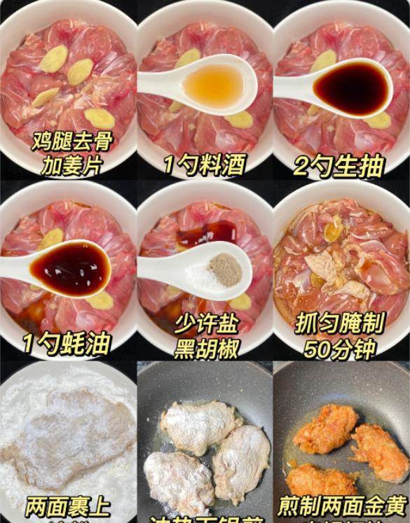 材料:適量雞腿,玉米淀粉,生姜片,料酒,生抽,蠔油,鹽,黑胡椒粉。