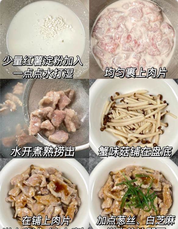 材料:紅薯,豬肉,蟹味菇,蔥,白芝麻。