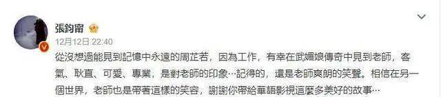 老師一直給我留下了客氣、耿直、可愛、專業的印象,記得的,還是老師爽朗的笑聲。相信在另一個世界,老師也是帶著這樣的笑容,謝謝你帶給華語影視這麼多美好的故事。」