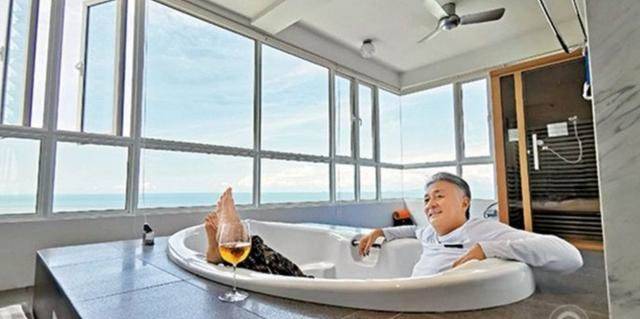據港媒報道,實力寵妻的吳岱融在早前,因為老婆的一句「怕凍」。立即在馬來西亞檳城為其租下了一間面積近五千尺的超級無敵豪華的海景房,做為養老的地方。