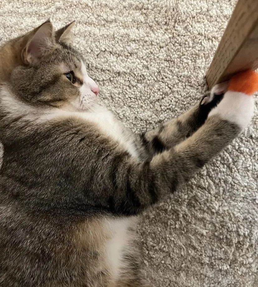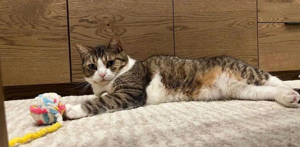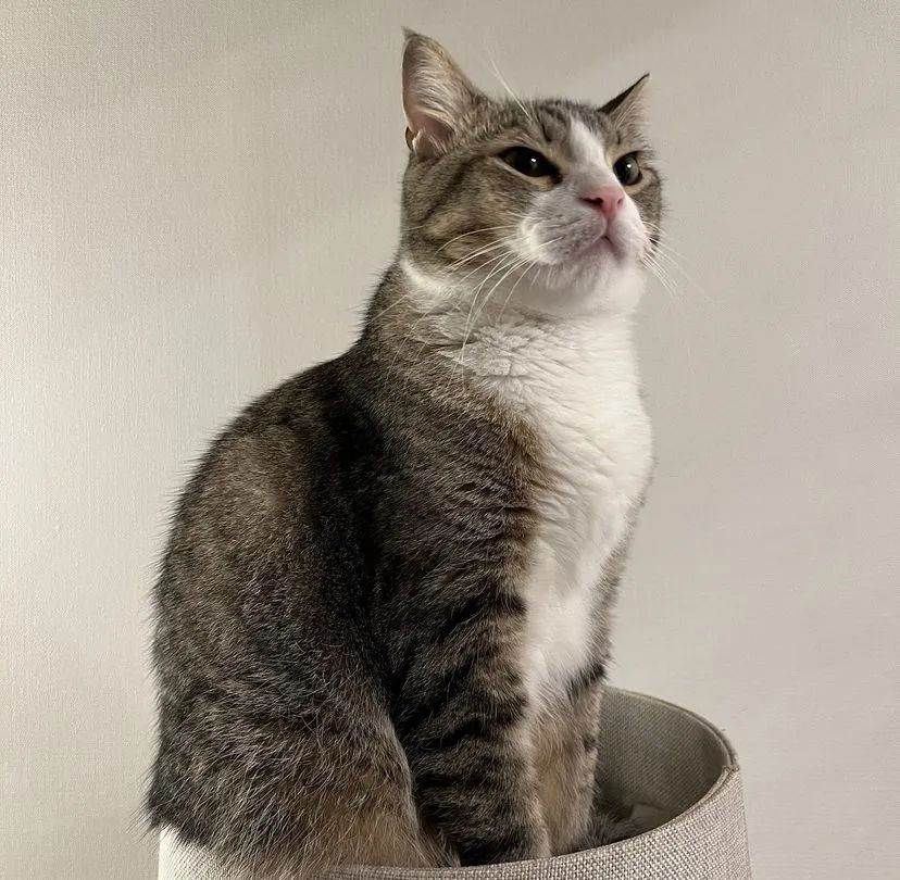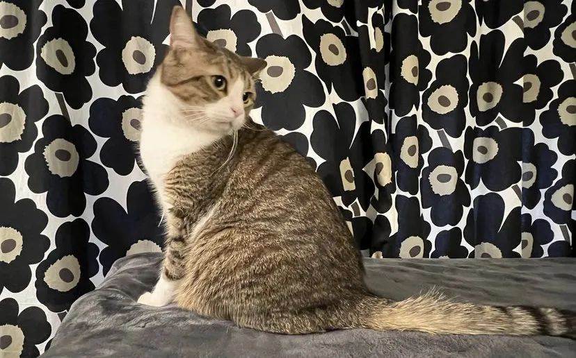 她養了一只貍花貓,名叫「麻辣燙」。喏,就是它↓