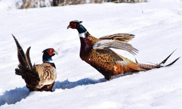 東北野雞擅長奔跑,喜歡刨食,到處晃悠。它們一般單獨行動,偶爾也組成一個小群體一起「趕大集」。可別小看,野雞的野外生存能力。東北冬天嚴寒低冷的氣候,練就了東北野雞適應寒冷的能力,使得它們能在冰天雪地的時候,踏著輕盈的步伐四處流竄。