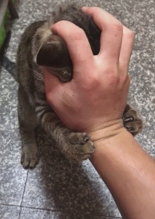 如果你還執意要碰它那里的話,貓咪就會抱著你的手,又咬又蹬,讓你遠離它,否則它就不客氣了。