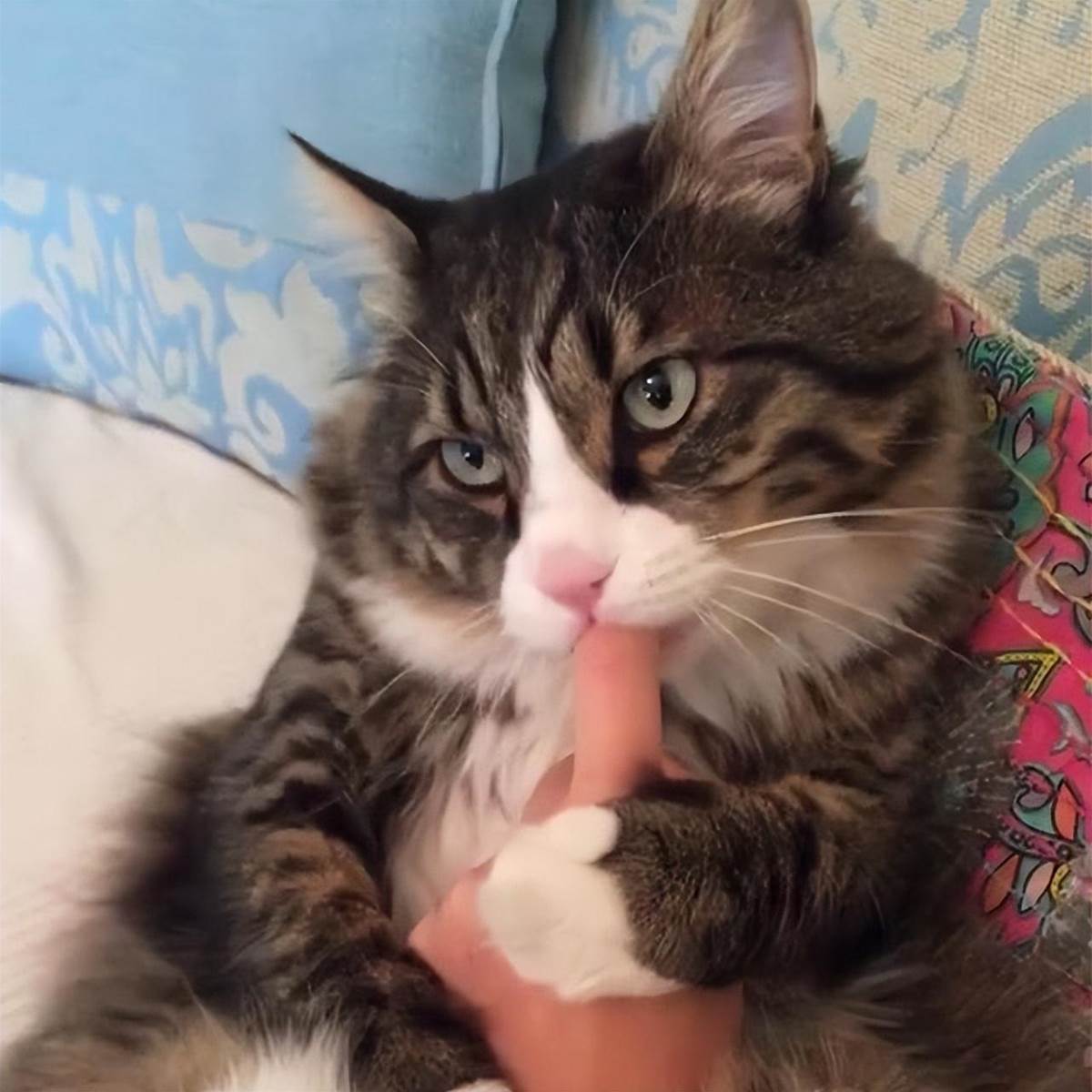 偷偷告訴你,貓咪抱著你的手「又咬又蹬」,有這些含義!