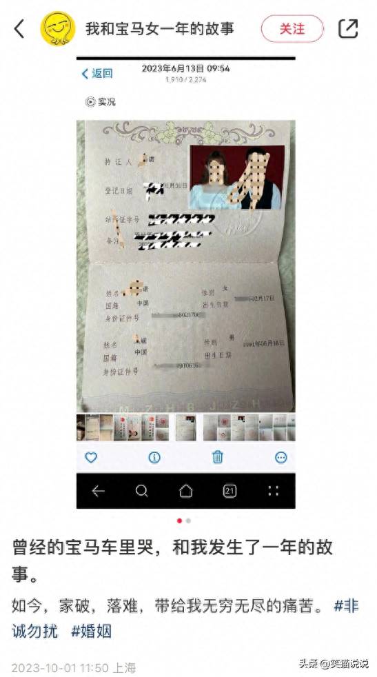 一位自稱是馬諾丈夫的網友在網上曬出了他跟馬諾的結婚證書,表示他是馬諾的丈夫,并發布長文控訴馬諾。他在文中控訴馬諾欺騙他的感情,還騙他的錢跟房子,現在找不到她的人了。