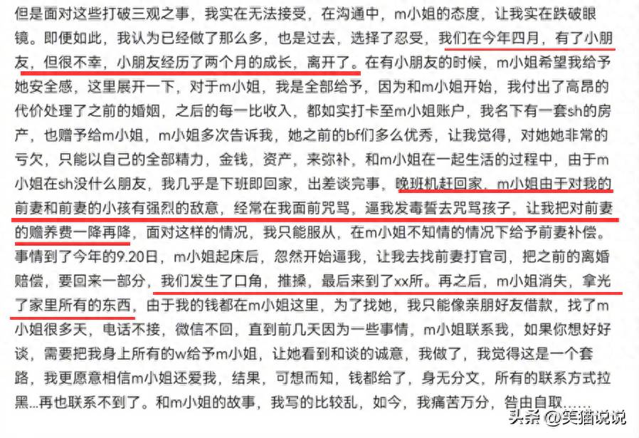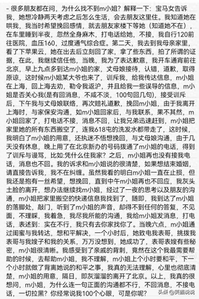 目前馬諾拉黑了丈夫的聯系,丈夫沒法聯系馬諾,所以就在網上發文控訴馬諾。