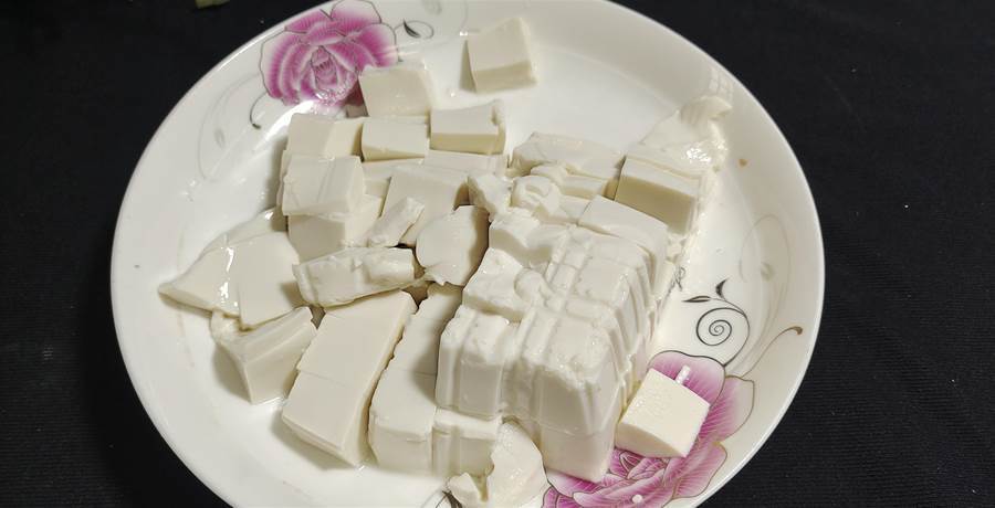 第二步:準備嫩豆腐一盒,取出后切成小塊,你也可以用老豆腐來制作,建議老豆腐煎一煎更好。除豆腐外還要準備海鮮菇一把,木耳泡發,青菜一把備用。