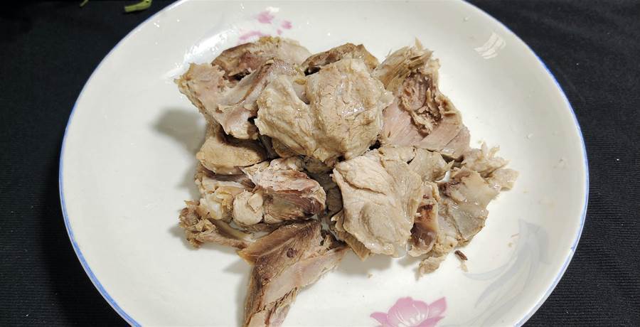 第一步:拆骨肉大家應該都知道,就是豬骨煮熟后剔除下來的肉,大家可以多買買一些豬大骨自己煮一個小時,肉剔下 ,肉湯可以留作后用,或者煮面燒菜都可以。