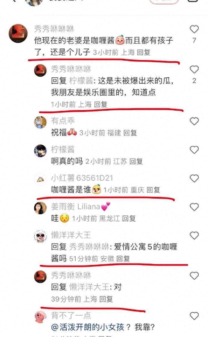 一位名叫「秀秀咻咻咻」的網友表示,黃宗澤已經已婚生子,老婆是演員萬籽麟,也就是《愛情公寓》中「咖喱醬」的扮演者。