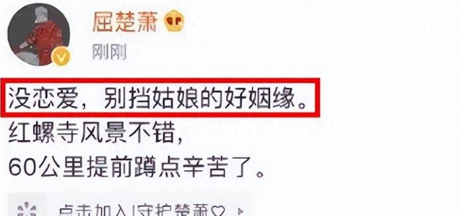 屈楚蕭否認戀情,喊話狗仔「別擋姑娘的好姻緣」,萬籽麟則表示 「剛剛得知被分手了」。