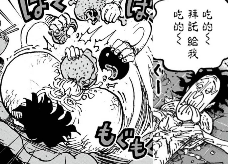1103話魯夫正在吃飯恢復體力,土星圣叫海軍去阻止魯夫并用海樓石限制他的行動。