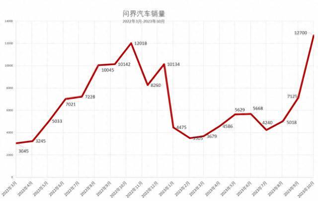 而10月份,華為問界再次成為「黑馬」,月銷量達到了1.27萬台,這個數據也是問界自去年3月份交付以來,創下的最好交付成績,真正創下了新高。