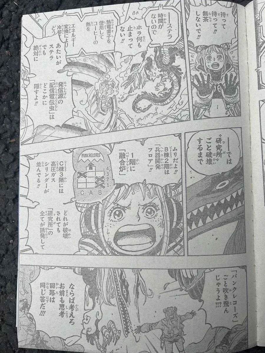 內奸約克拿著一個武器,她告訴火星,貝加龐克新型電話蟲很可能在龐克記錄上面,火星馬上飛上去,他很快就來到龐克記錄的入口。斯圖西正在看守被關押的CP0和熾天使,卡庫在詢問斯圖西,你背叛CP0現在又被草帽一伙拋棄,斯圖西說自己留下來斷后的,負責開啟防御罩。