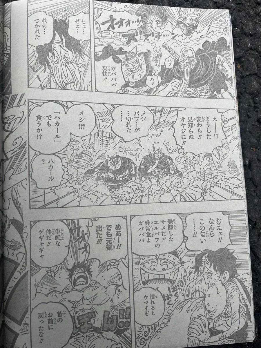 尼卡魯夫的五檔模式解除了,他變成了一個老頭,巨人族帶著魯夫逃跑,還拿出一塊肉給魯夫吃。這塊肉是冷凍的,魯夫覺得不好吃,不過他吃完肉后就恢復正常了,變回普通人。水星已經追殺過來了,魯夫使用四檔火拳揍了水星,不過水星沒有受傷。