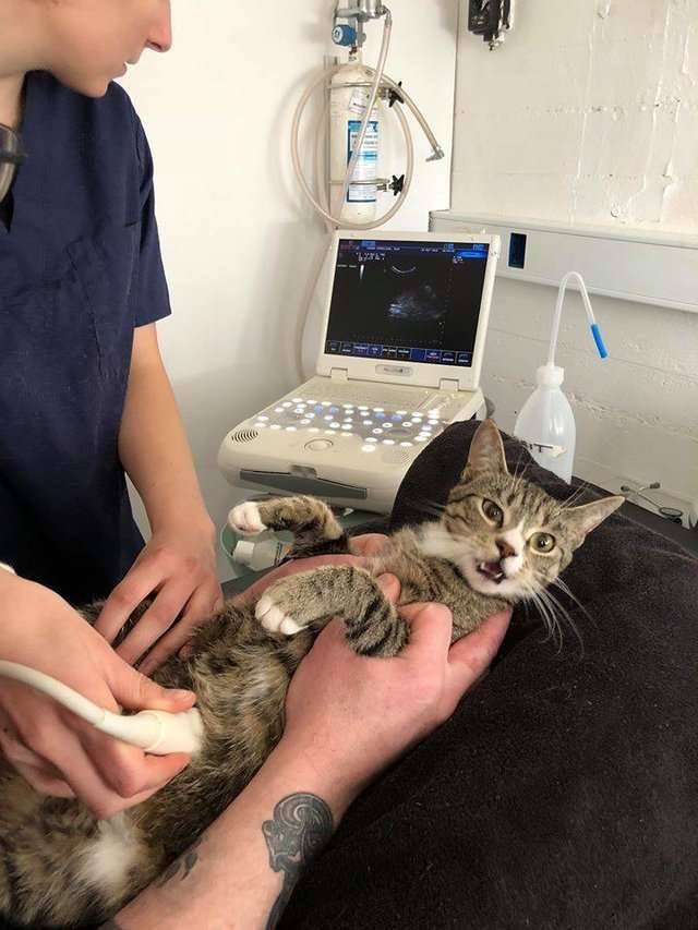▼在剛過了一歲生日的時候,Ulla散發出前所未有的母性,但是還沒有人猜到這隻小貓身體裡藏著的秘密,直到牠的體重迅速增長,乳頭變得很硬,才被送到一所獸醫機構進行超聲波檢查,果然,熒幕上顯示,這隻小貓很快就要當媽媽了。