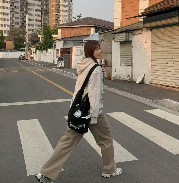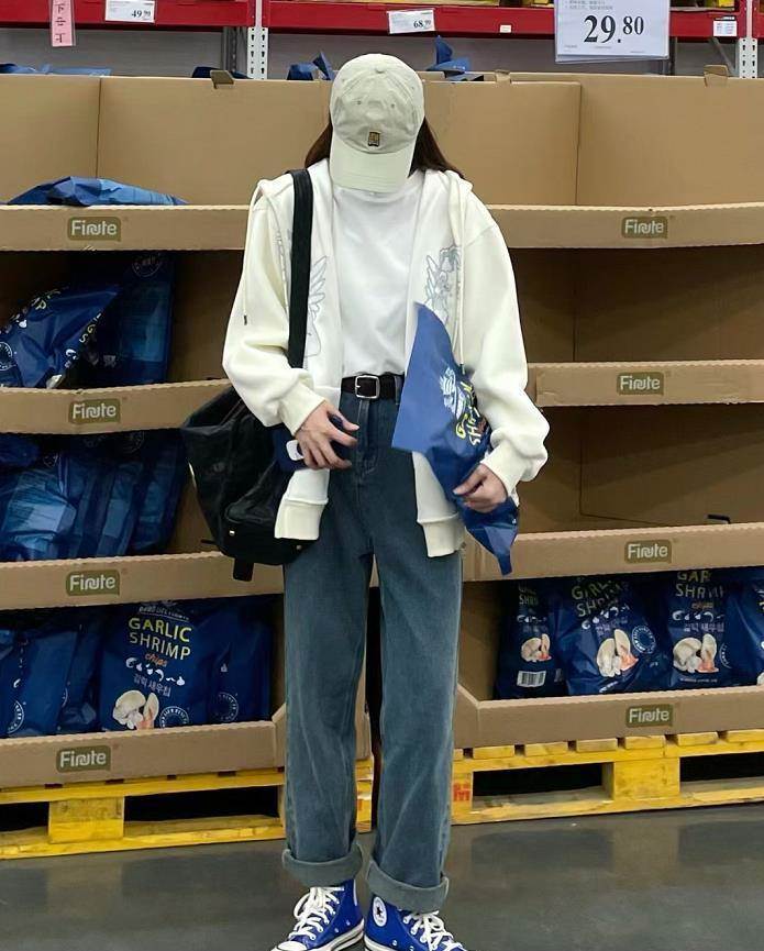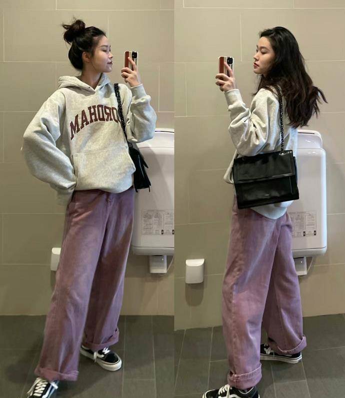 這是屬于微胖女生的韓系慵懶風穿搭,整體給人的感覺就是中性風滿滿,基礎款衛衣和休閑褲,再加上一雙運動鞋,舒適又自在。