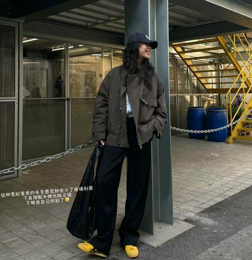 既適合打工人,又可以逛街的時候穿,美式復古酷帥感十足,早春季節,溫度還是有些不穩定的,出門記得選一件外套來穿。