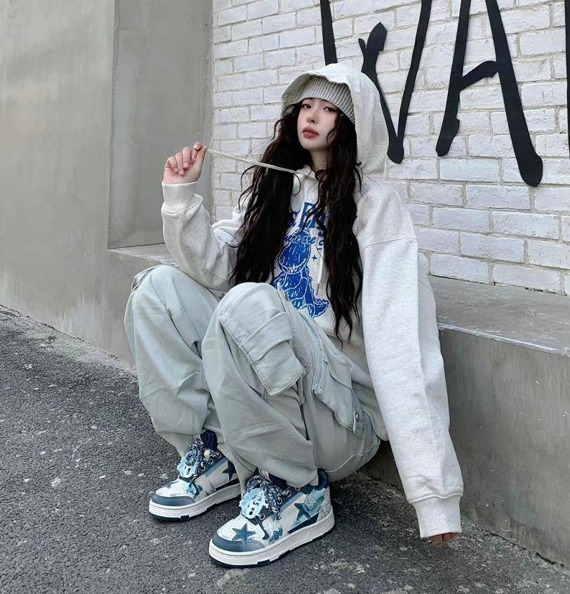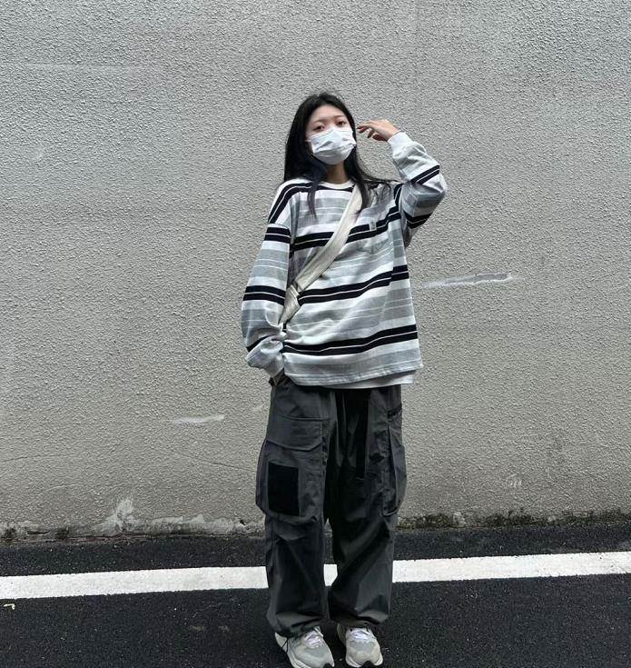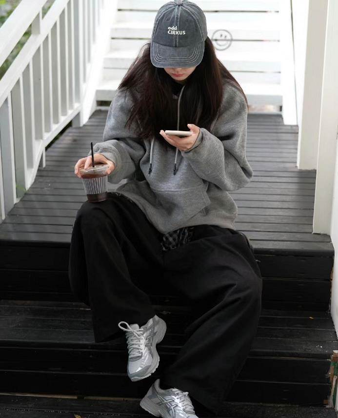 穿不膩的灰色系穿搭,復古街頭風十足,連帽衛衣+工裝褲+運動鞋,這樣的穿搭組合實在是太不失青春洋氣感了,滿滿的活力。