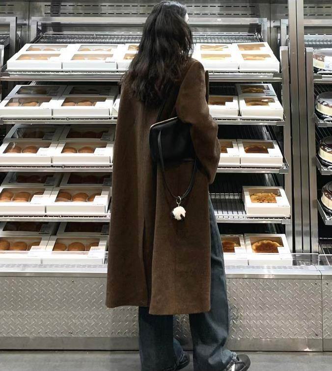 復古又慵懶的穿搭,看起來又拽又自由的,松弛感的衣服,穿起來不僅舒適,還有著無限的可能。深棕色大衣+牛仔褲,很有范帶點中性的味道。