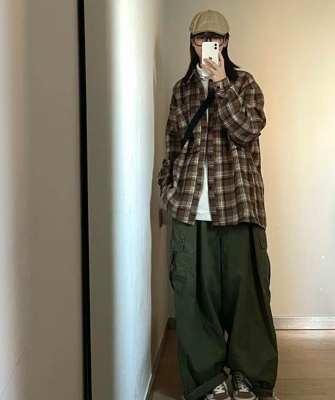 該怎麼形容這種感覺呢?美拉德色系的格子襯衫,寬松的版型下,不僅能帶給你一種舒適自在感,還很休閑。