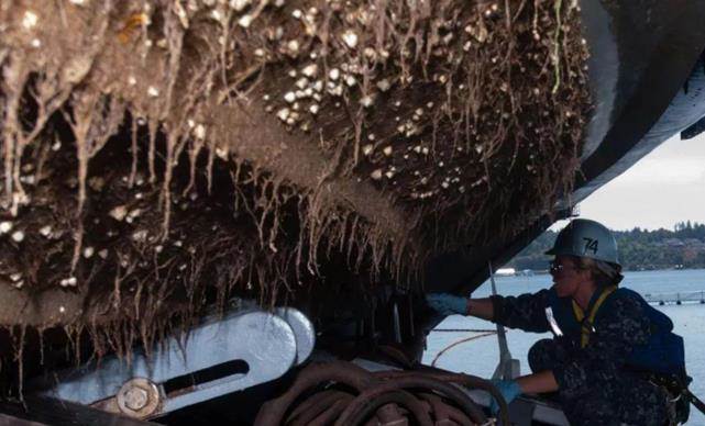 再加上,生物粘附在船底的話,會整體破壞設計平衡,行駛的時候會很吃力,常規動力航母燃料消耗會增加,屆時成本也會提高,可能影響很小,但日積月累下來,費用也是極其龐大的,絕對不能夠忽視。所以每次出行后,航母都要對船底進行清理,直到不影響運行為止。
