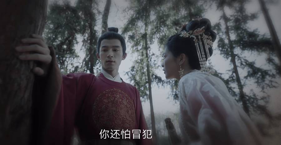 其實主要有四個場景,第一個場景就是兩人在一個亭子中躲雨,而張遮看到皇后姜雪寧來了就想逃,張遮的衣擺被皇后姜雪寧踩住,姜雪寧還用手中雨傘的傘檐滴水,讓張遮全身淋透,她在戲弄張遮,但同時也令張遮對她產生了感情,張遮一身正氣,可偏偏淪陷在這個邪異的皇后手中。