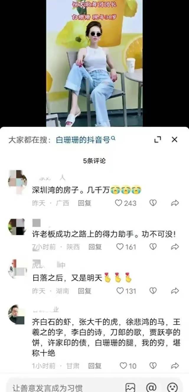 然而,就在白珊珊以為自己擁有了一切的時候,命運卻給了她一個巨大的打擊。2023年9月,恒大集團爆發了嚴重的債務危機,面臨著破產和清算的風險。這對于白珊珊來說,無疑是一個晴天霹靂。她不僅面臨著失去工作和收入的可能性,還面臨著失去家庭和財產的危險。她曾經為之付出青春和激情的恒大集團,如今卻成了她最大的噩夢。