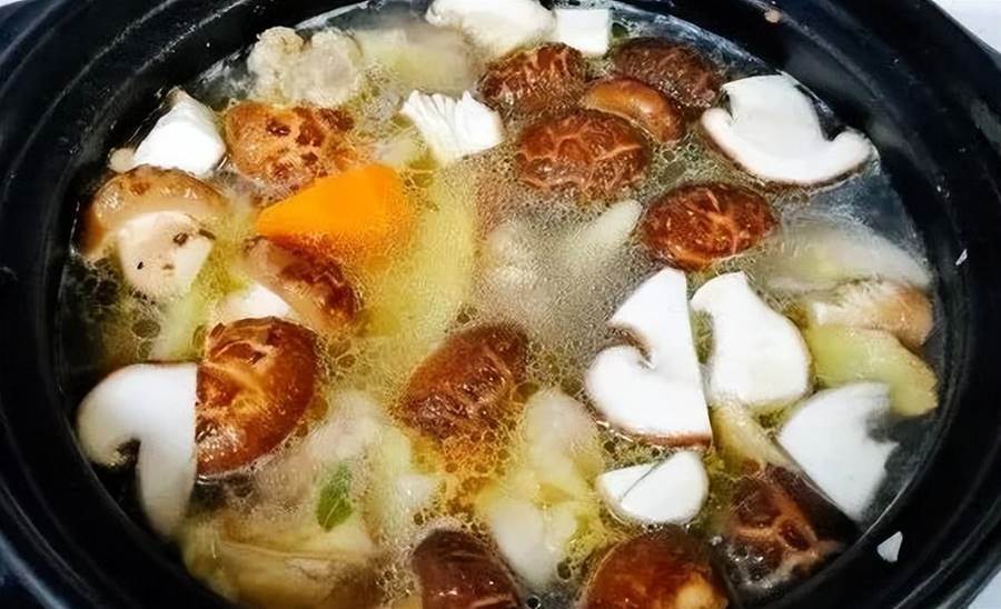 7.根據個人喜好,可以在煮熟的白蘿卜香菇湯中加入雞肉或豬肉片、干貝或蝦仁等其他海鮮類食材。
