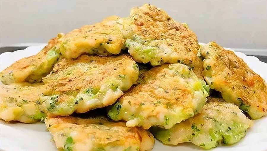材料準備:西蘭花、雞蛋、面粉、牛奶、干貝粉或蝦仁粉、鹽、食用油
