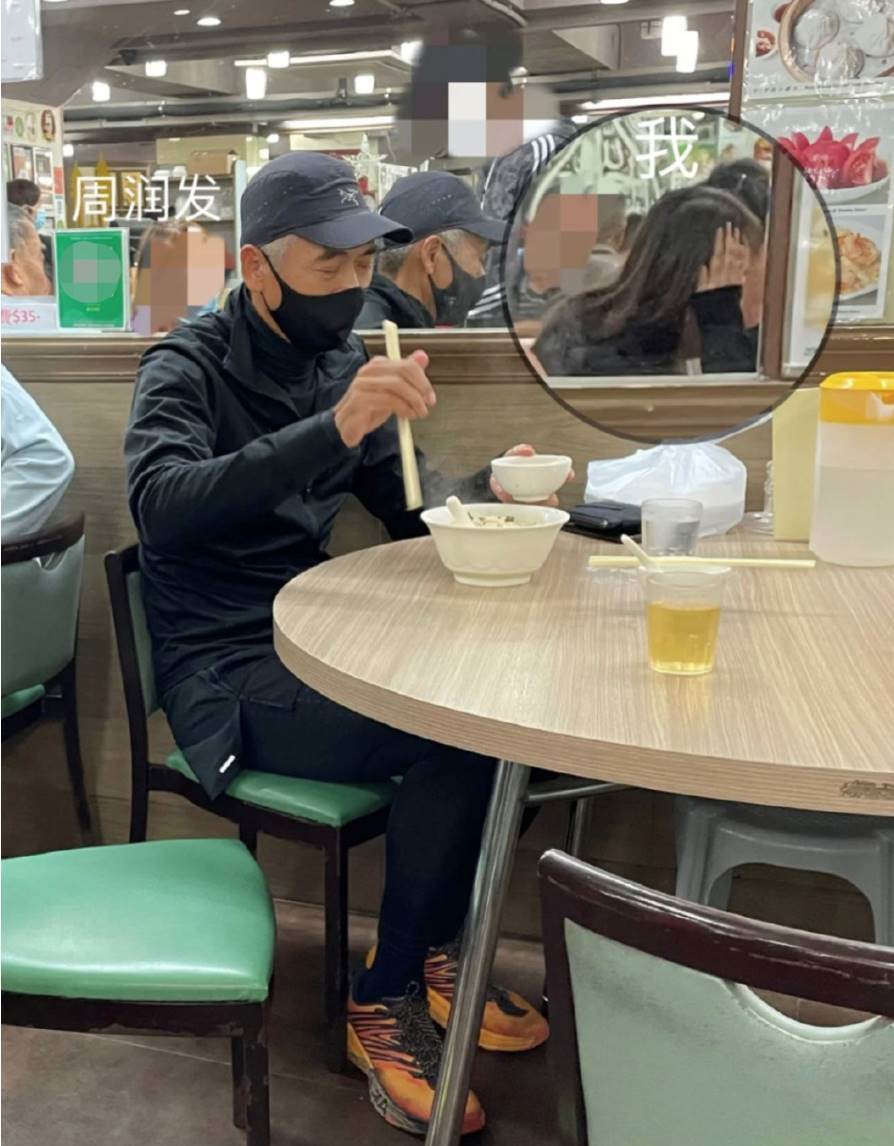 就有一位女網友去餐廳吃飯時捕獲「野生周潤發」的身影,她表示那時在餐廳因為位置不夠要併桌,竟發現同桌的竟是「賭王」,只見照片中周潤發穿著相當樸素,他一身黑衣、頭戴著黑帽,白髮蒼蒼的就像位平凡老伯伯,桌上只擺了一碗麵和白開水,獨自用餐的模樣,跟其他店內的顧客沒有什麼不同~