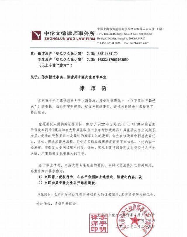 事情發酵后,吳奇隆方面出面辟謠,還稱會走「法律程序解決」。