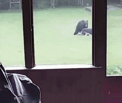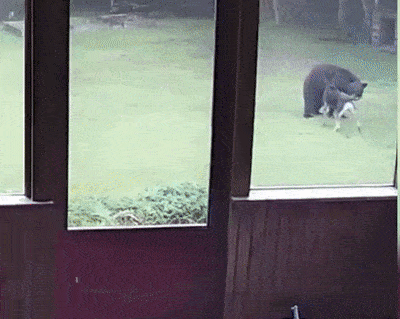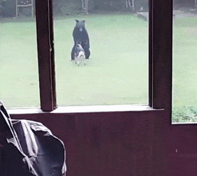 可雖然這個畫面像極了童話,但鏟屎官卻緊張到不行,她很慶幸,當時自己的孩子沒出去,狗子沒有受傷,小熊的心情也不錯...