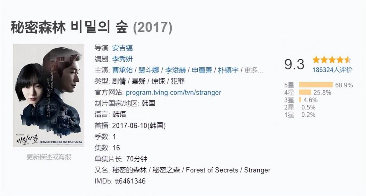 《秘密森林》在2017年7月份一經播出,同步引進到中國后,就被中國網友打出了9.