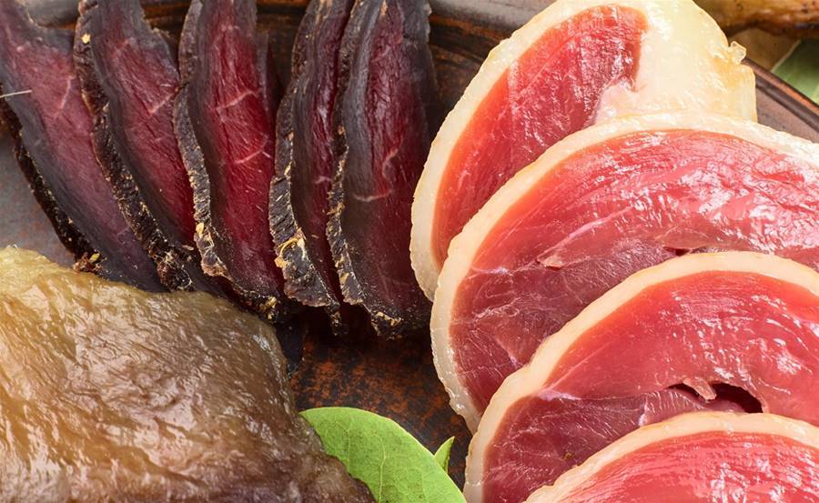 在制作過程中,豬后腿需要被精雕細琢,剔除骨頭和多余的脂肪。接著,腿肉會被浸泡在獨特的腌料中,翻攪均勻,讓每一塊肉都充分吸收這種美味。