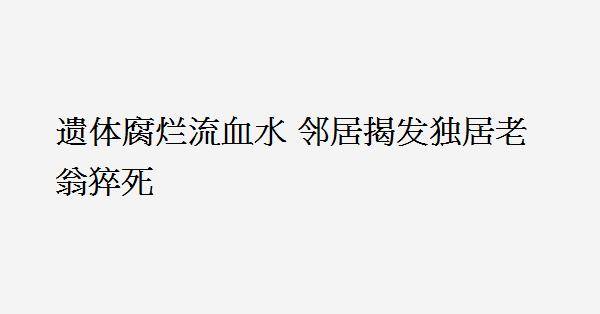(關丹‧甘孟16日迅)甘孟一名七旬獨居老翁不幸猝死客廳數天,遺體己呈高度腐爛並流出血水,鄰居周三晚上無意間發現屍體後,趕緊報警求助。