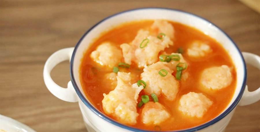 第三步:起鍋燒油,鍋熱后把油倒進去,番茄下入炒至變軟出汁,然后加入少許番茄醬,根據自己的口味來,小編一般是加入兩勺。把它們翻炒均勻后,倒入適量的清水調制大火將其煮沸,然后我們把蝦滑放進去。出鍋前根據自己的口味加入適量食用鹽,撒上蔥花就完成了。