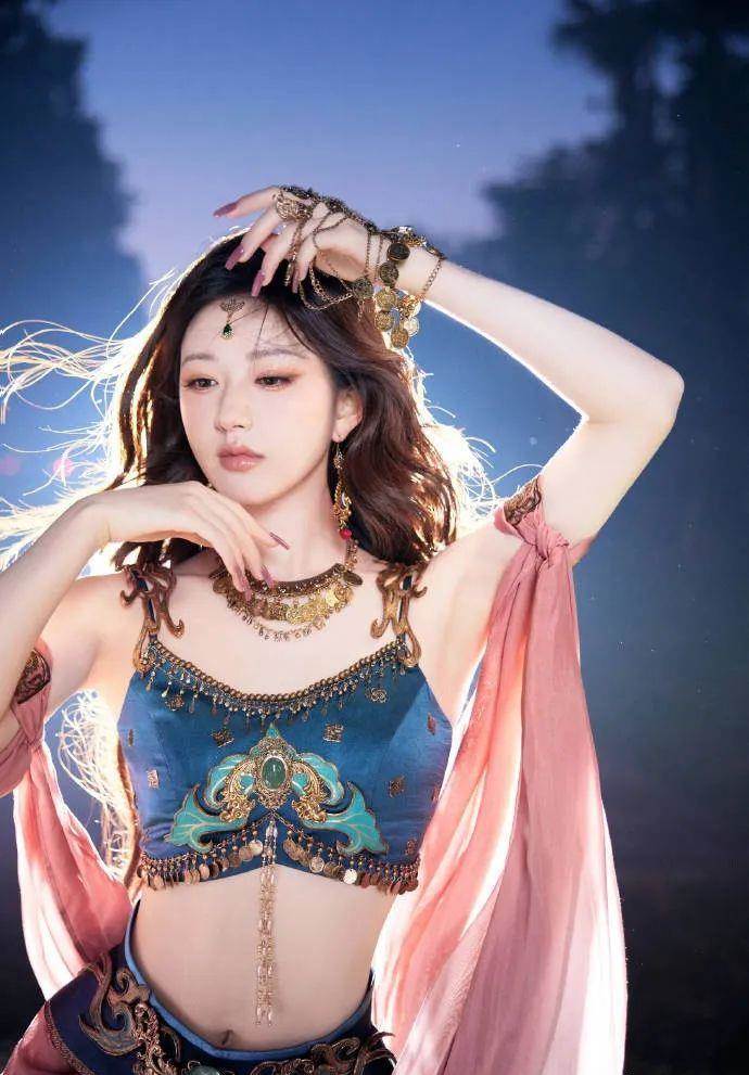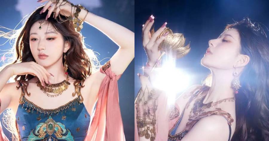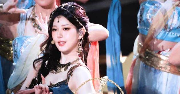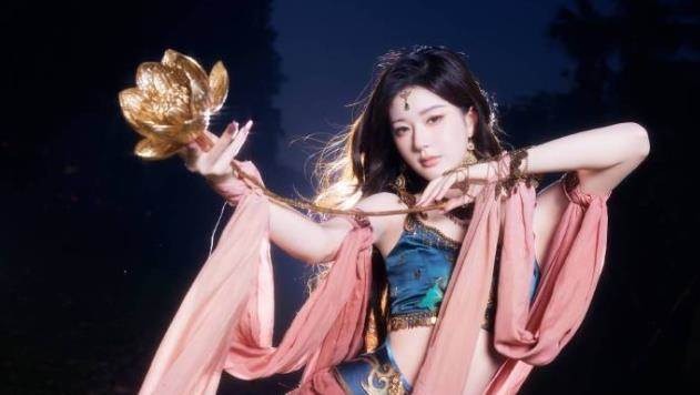 當音樂響起,舞台燈光閃耀,趙露思身著華麗的敦煌服飾,出現在觀眾面前。她優美的舞姿和嘹亮的歌聲迅速吸引了觀眾的注意力。她仿佛化身為一個神秘的仙女,帶領觀眾穿越到了壁畫般的異域世界中。