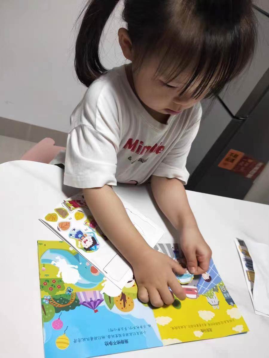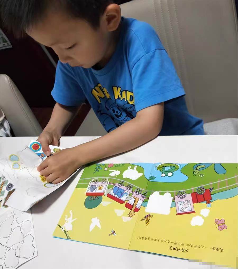 回家后也給小寶買了這套貼畫繪本,小寶也非常喜歡,并且玩了一段時間后,愛動的他能坐得住了,專注力越來越好。