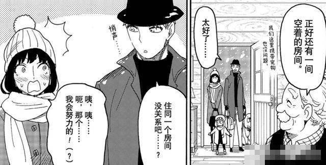 結果果不其然,回家的時候出現了事故,不得不在這里留宿,這里又發了一波約爾和黃昏的糖,這兩人第一次同時住在一個房間,黃昏倒是無所謂,但是約爾太太就很緊張了,看來約爾太太已經做好了戰斗準備。