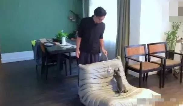 多數時間謝霆鋒都是一個人在家的,所以特意放了一張懶人沙發給自己,可以在上面和貓咪玩耍。