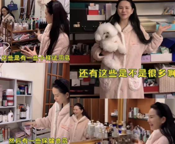 各種大牌護膚品陳放其中,顯然在日常護理中也絲毫沒有松懈。