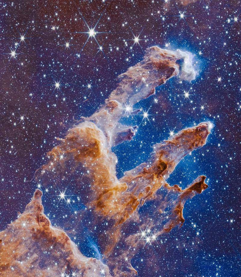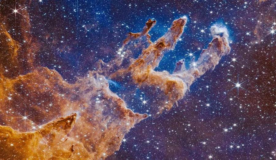 科學家經過研究得出,創生之柱其實就是鷹狀星云的一部分,照片中幾個高高的柱子,高達10光年左右,光年是一個距離單位,一光年相當于光飛行一年的距離,對于人類來說,10光年的范圍非常遙遠,在這個創生之柱當中,已經孕育出了很多恒星,這些恒星的質量有一些比太陽的質量還大。不過這里需要注意的是,韋伯望遠鏡拍攝到的創生之柱并不是它現在的樣子,而是它6500萬年前的樣子,這是因為光在宇宙中傳播是需要時間的,光經過6500萬年的時間才能夠傳播到地球上,所以我們看到的是它之前的樣子,除此之外,我們看到的宇宙中的其它星系和天體,也都是它們之前的樣子,有可能現在創生之柱已經不存在了。