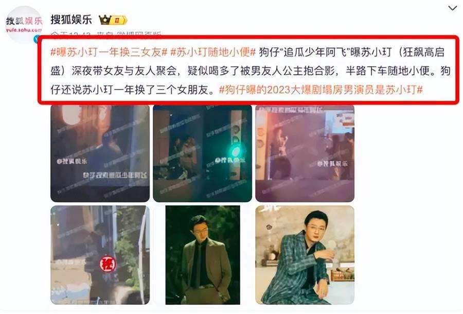 塌房會引起負面的連環反應,一直都是娛樂圈的傳統,蘇小玎也不例外。繼蘇小玎隨地大小便的事情上了熱搜之后,有網友就扒出了他的感情問題。