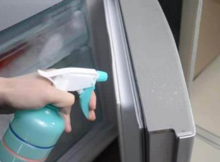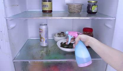 接著把冰箱里弄髒的地方噴上一些自製的清潔劑,靜置30s-60s的時間,