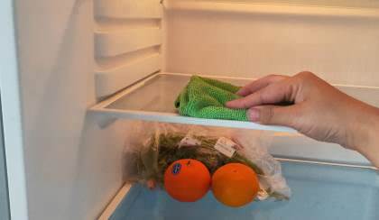 然後用抹布擦拭乾淨,這個時候你會發現,冰箱裡面的頑固污漬被輕鬆的去除乾淨了。